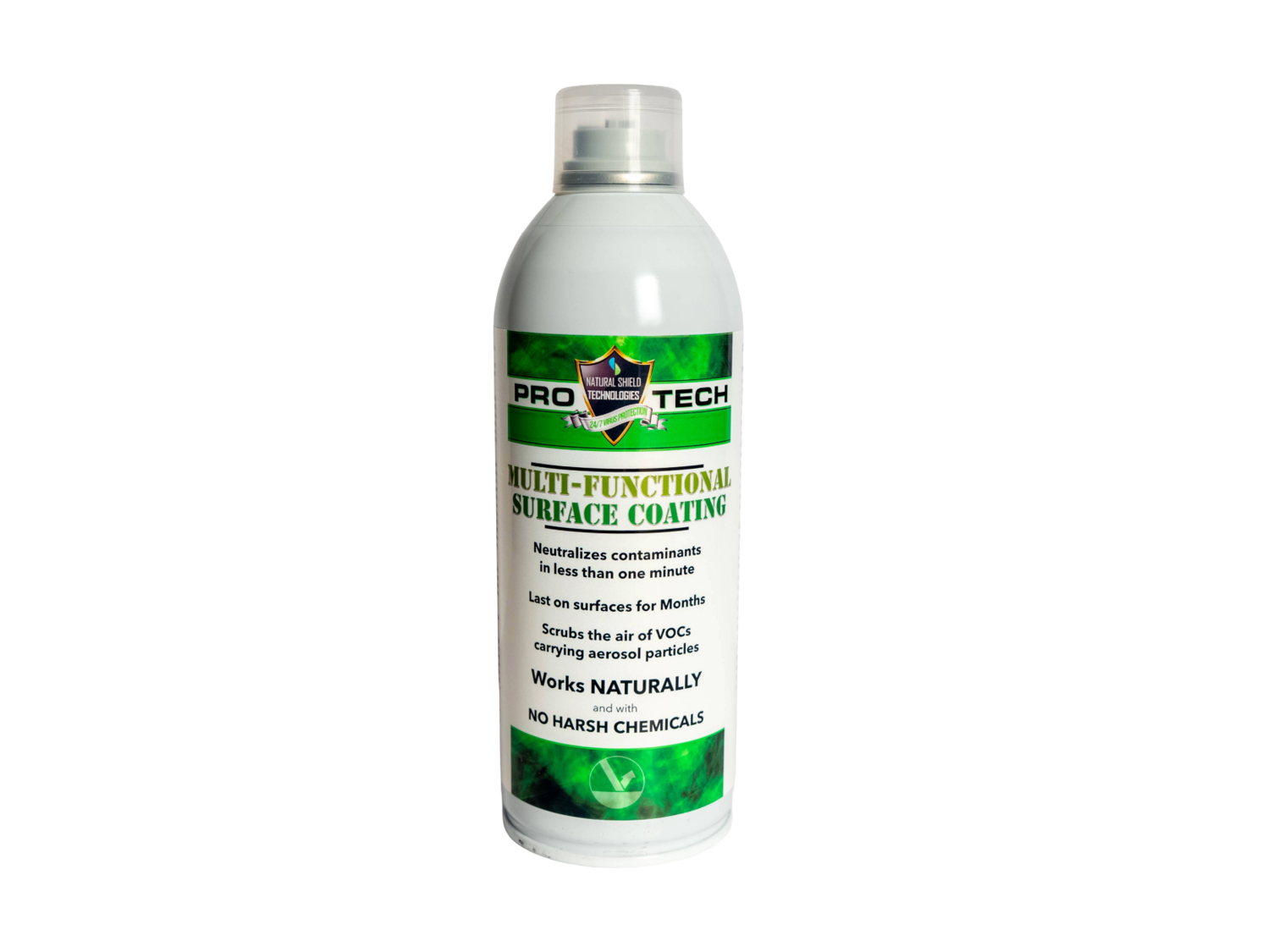 Stop germs between cleanings! ProTech creates an invisible shield that keeps fighting germs and odors for up to 90 days using Photocatalysis. Safe, water-based, and effective on any surface. Each can will treat up to a 1000sqft area with standard ceiling height.